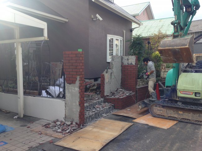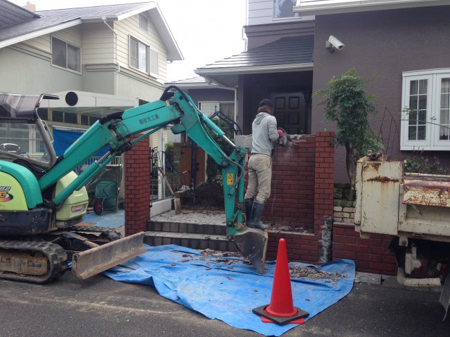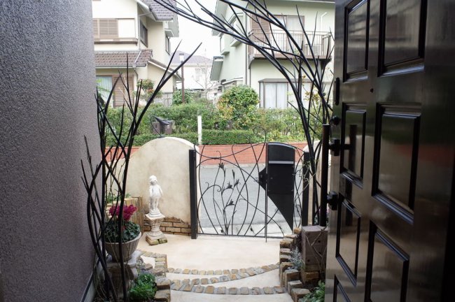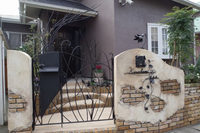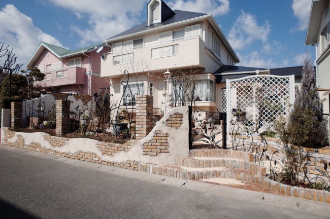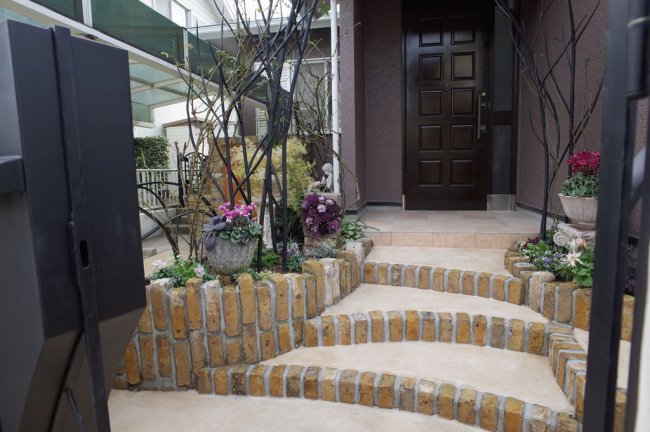 玄関廻り外構全面改修工事アンティークな雰囲気に全面改修しました!使用したレンガ・レンガタイルはヨーロッパから輸入した本物のアンティークです!