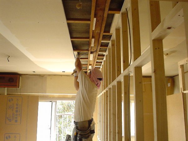 (施工前・施工中)コレはお部屋のレイアウト変更のため大工さんが新たな間仕切り壁を造作しています