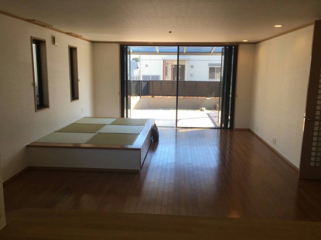 | リフォーム概要 | 壁:クロス貼り替え タイル貼り天井:クロス貼り替え床:ウッドフロアー貼り照明:LEDダウンライト・ダイビングスポット照明カーテン:縦型ブラインド・ロールスクリーン |