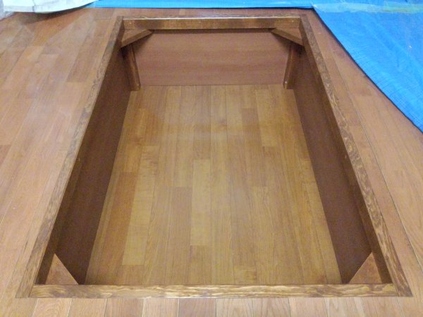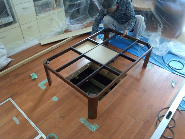 (施工前・施工中)まずは設置するテーブルの寸法の合わせて開口寸法を位置出しします。