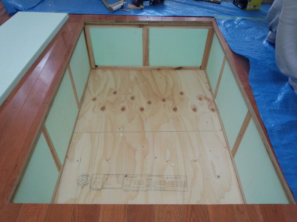 (施工前・施工中)下地となる木・コンパネを取り付け断熱材で囲みます。